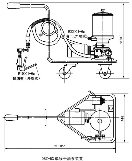 一、概述 DB-63 型單線干油泵適用于潤滑頻率較低、公稱壓力為10MPa、潤滑點(diǎn)在80 點(diǎn)以下的單線小型干油集中潤滑系統(tǒng)中,通過片式給油器向各潤滑點(diǎn)供送潤滑脂。 DBZ-63型單線干油泵適用于潤滑周期較長或者設(shè)備較分散的潤滑點(diǎn),通過注油槍直接加注潤滑脂,特別適用于港口碼頭的運(yùn)輸機(jī)械設(shè)備。
