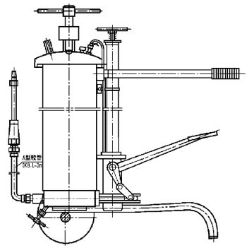JRB2-X3型腳踏潤(rùn)滑泵主要由貯油器,柱塞泵、打氣筒操縱裝置四大部分組成。
