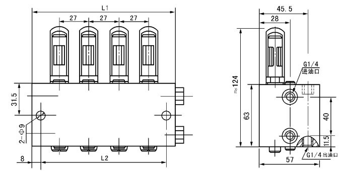 一、使用條件 VSKH-KR型雙線分配器上下面均有出油口,分配器活塞正反向動作時分別從上面和下面的出油口排出潤滑脂。還可以從指示桿的動作直接觀察分配器的工作情況,同時還可通過調(diào)整螺釘在規(guī)定范圍內(nèi),調(diào)整出油口的給油量。 分配器適用于公稱壓力為40MPa的雙線式干油集中潤滑系統(tǒng)中。它在兩條供油主管交替的供油壓力作用下,直接由供油壓力控制活塞動作給油,完成向潤滑點定量分配潤滑脂的功能。