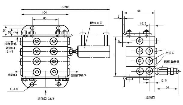 1、分配器為單柱塞多片組合結構,每片有兩個出油口,分為JPQ1、JPQ2、JPQ3 和JPQ4四種形式。 ①每種形式的分配器,一般按額定給油量相等的單片組合,需要時也可將額定油量不同的單片混合組合。 ② JPQ4型組合時需有一片控制片,此片無給油口。 ③相鄰的二個或二個以上的給油口可以合并成一個給油口給油,此給油口的給油量為所有被合并給油口的額定給油量之和。 2、JPQ1型和JPQ2型分配器在系統(tǒng)中串聯使用,JPQ3型和JPQ4型分配器在系統(tǒng)中并聯使用。 3、分配器均裝有一個運動指示桿,用于觀察分配器工作情況。根據需要還可以安裝限位開關,對潤滑系統(tǒng)進行控制和監(jiān)視。 4、JPQ2型、JPQ4型分配器根據需要可以安裝超壓指示器。