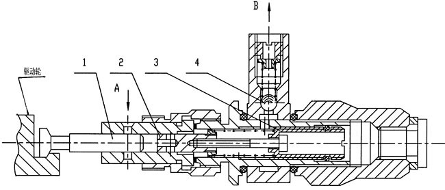 1—工作活塞 2—控制活塞 3—調(diào)節(jié)螺套 4—單向閥