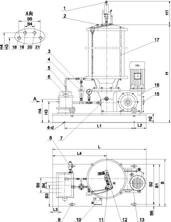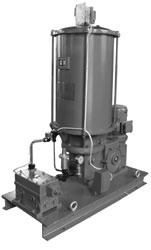 一、概述 DRB-L系列電動潤滑泵適用于潤滑點多,分布范圍廣,給油頻率高的雙線式干油集中潤滑系統。通過雙線分配器向潤滑部位供送潤滑脂,可滿足各種機器設備的需要,對于大型機組和生產線尤為適宜。 該系列電動潤滑泵可組成雙線環(huán)式集中潤滑系統,即系統的主管路組成環(huán)狀布置,由返回潤滑泵的主管道末端的系統壓力來控制液壓換向閥,使兩條主管道交替地供送潤滑脂的集中潤滑系統;見外形圖和外形尺寸表的規(guī)定。也可組成雙線終端式集中潤滑系統,即由主管道末端的壓力操縱閥來控制電磁。換向閥交替地使兩條主管道供送潤滑脂的集中潤滑系統,也見外形圖和外形尺寸的規(guī)定。 該系列電動潤滑泵采用雙柱塞機構,運轉可靠,減速機構置于泵體內,結構緊湊,體積小,配以相應的電控箱可以實現自動控制。